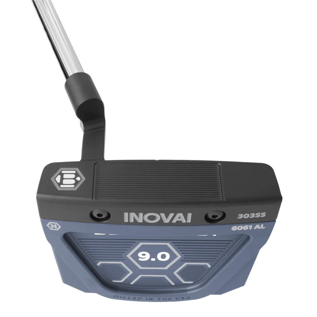 Bob Bettinardi designed the INOVAI 9.0 CB to offer a full-body high-MOI mallet as a counterbalance. The wide body creates ideal visual cues with long sightlines, a tapered shape, and innovative stability wings for added control. Precision machining techniques create a seamless connection between the body and the face, which features a wide topline for ease of alignment. The sole was designed with a Fixed Depth Port which maximizes MOI by distributing weight to the perimeter. The INOVAI 9.0 CB has more weight in the sole which is counterbalanced by a longer shaft. This combination increases MOI and stability, giving the golfer unparalleled control. The 303 Stainless Steel front piece with Roll Control™ face milling offers our softest feel and audible feedback preferred by Tour players with our proprietary groove design that promotes forward roll at impact, getting the ball into a true roll faster.