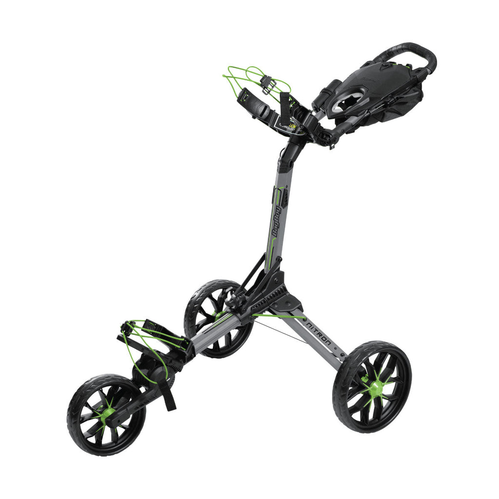 The fastest opening cart in golf. Open and close the Nitron in an instant thanks to Nitro Piston Technology, a patented nitrogen powered auto assist open mechanism. Featuring Top-Lok Technology, a patented bag-to-cart attachment system that prevents twisting and turning.